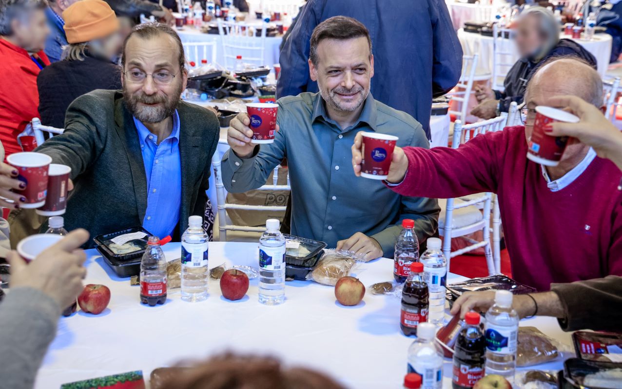 Στο Γεύμα Αγάπης, που διοργάνωσε σήμερα για τους άστεγους της πόλης το Κέντρο Υποδοχής και Αλληλεγγύης του δήμου Αθηναίων, βρέθηκε ο Χάρης Δούκας. Ο νέος δήμαρχος της πρωτεύουσας πήγε στο Κλειστό Γυμναστήριο του Ρουφ, για να ευχηθεί σε όσους βρέθηκαν εκεί την ημέρα των Χριστουγέννων και να μιλήσει μαζί τους, ενώ στη γιορτινή ατμόσφαιρα συμμετείχε και η Φιλαρμονική Ορχήστρα του δήμου, με τις χριστουγεννιάτικες μελωδίες της.