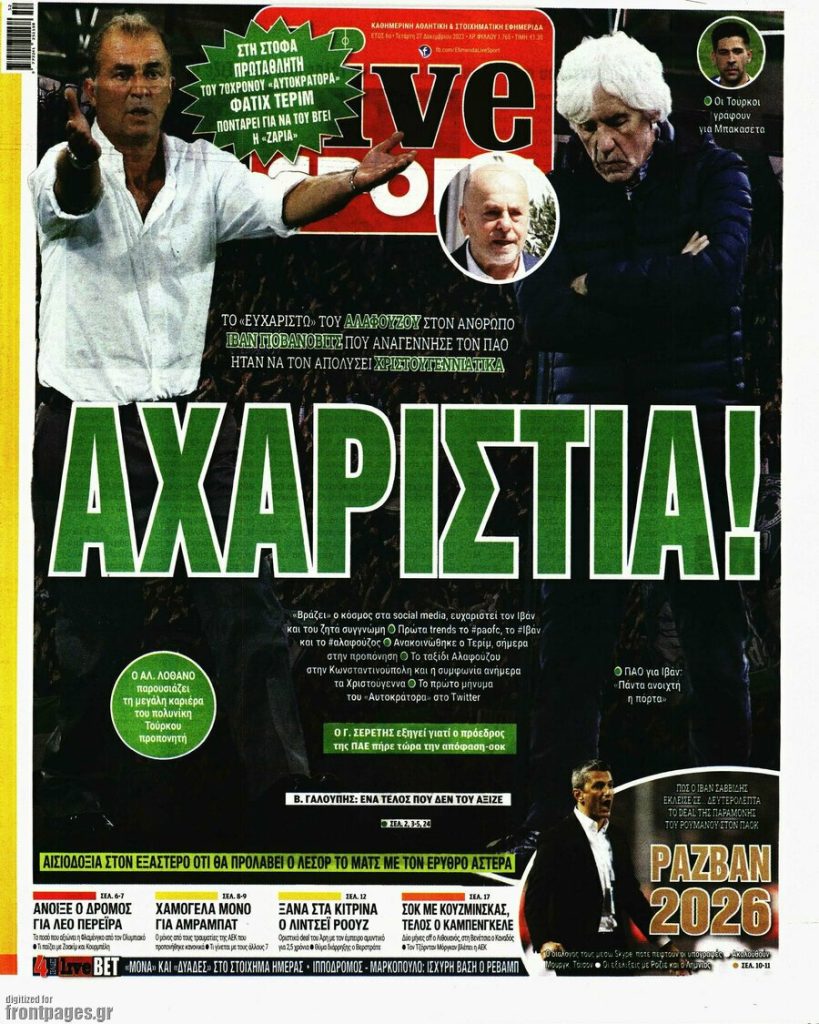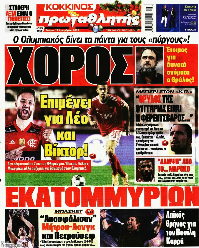 Κοινοποίηση Facebook Twitter LinkedIn Pinterest Email Copy Link Δείτε τα πρωτοσέλιδα των σημερινών αθλητικών εφημερίδων