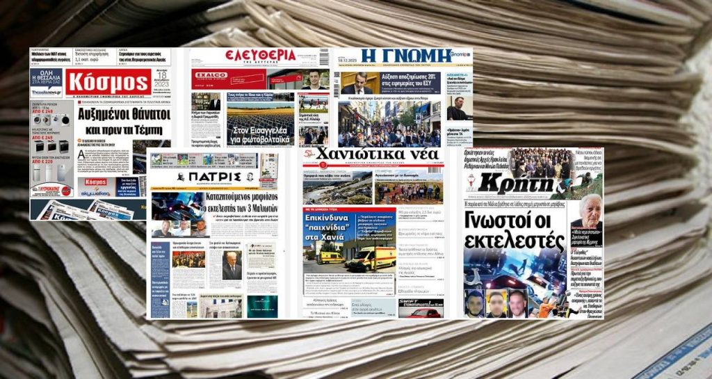 Κοινοποίηση Facebook Twitter LinkedIn Pinterest Email Copy Link Δείτε τα πρωτοσέλιδα των σημερινών τοπικών εφημερίδων