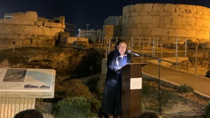 Η Λίνα Μενδώνη στον χαιρετισμό της επεσήμανε ότι «τα θεμιστόκλεια τείχη του λιμένος του Πειραιά, μέρος των οποίων είναι και η Ηετιώνεια Πύλη, αποτελούν ένα από τα σημαντικότερα έργα της αρχαίας ελληνικής οχυρωματικής. Εδώ, μπορεί να αναγνωρίσει κανείς τις οχυρωματικές τεχνικές που αναπτύχθηκαν από τον 5ο έως τον 3ο αι. π.Χ. Είναι πολύ σημαντικό το εξαιρετικό αυτό έργο να το βλέπουν σωστά φωτισμένο και να απολαμβάνουν οι δημότες, οι επισκέπτες, οι επιβαίνοντες στα καράβια, που φθάνουν στο μεγάλο λιμάνι. Η συζήτηση για την ανάδειξη του αρχαιολογικού χώρου της Ηετιώνειας Πύλης- του μεγαλύτερου αρχαιολογικού χώρου της Πειραϊκής, έκτασης 20 στρεμμάτων, που παραχωρήθηκαν από τον ΟΛΠ στο ΥΠΠΟ- ξεκίνησε το 2010. Τελικά, το 2013, υπεγράφη Προγραμματική Σύμβαση Πολιτισμικής Ανάπτυξης μεταξύ του Υπουργείου Πολιτισμού και της Περιφέρειας Αττικής με αντικείμενο τον φωτισμό της Πύλης και των καταλοίπων του Αφροδισίου, που βρίσκονται εντός του χώρου. Η υλοποίησή της σύμβασης ξεκίνησε το 2013 και σήμερα ολοκληρώνεται όλη η παρέμβαση με τον φωτισμό της Πύλης και αναβαθμίζεται η ευρύτερη περιοχή. Ο αρχαιολογικός χώρος εντάσσεται στον αστικό ιστό, συνδέει το παρελθόν με το παρόν, αναδεικνύει τη μεγάλη ιστορική διαχρονία του λιμανιού του Πειραιά και καθορίζει μια νέα αστική ταυτότητα στην πόλη και το παραλιακό της μέτωπο, καθώς σε επαφή με τον αρχαιολογικό χώρο βρίσκεται το «Καστράκι» Δραπετσώνας, ένα δημοτικό πάρκο, που προγραμματίζεται να φιλοξενεί ένα πολυμορφικό πλέγμα πολιτιστικών δράσεων και δραστηριοτήτων. Το έργο της ανάπλασης του αρχαιολογικού χώρου της Ηετιώνειας Πύλης, ας το δούμε ως προπομπό και σε άμεση συνάρτηση με το μείζον έργο της μετατροπής του Σιλό -αυτού του εμβληματικού κτηρίου για τον Πειραιά, ακριβώς απέναντι από την Πύλη- σε Μουσείο Εναλίων Αρχαιοτήτων. Το Μουσείο αυτό έρχεται να καλύψει ένα μεγάλο κενό. Στην πατρίδα μας έχουμε πολλά και εξαιρετικά αρχαιολογικά μουσεία. Ομως στην Ελλάδα, με τα χιλιάδες χιλιόμετρα ακτών, με τα χιλιάδες μικρά και μεγάλα νησιά, με τη ναυτοσύνη και τη θάλασσα να έχουν καθοριστικό ρόλο όχι μόνον στην ιστορία και τον πολιτισμό της πατρίδας μας, αλλά και στην οικονομική και την κοινωνική της φυσιογνωμία, δεν υπάρχει ακόμη το μουσείο, στο οποίο διαχρονικά να προβάλλονται και να διδάσκονται οι θησαυροί που ανασύρονται από τις θάλασσες μας, ο ενάλιος πλούτος της χώρας μας. Πριν λίγες μέρες υπεγράφη η σύμβαση με τον ανάδοχο του έργου. Το Μουσείο Εναλίων Αρχαιοτήτων, συνολικού προϋπολογισμού περίπου 100.000.000 ευρώ από τους πόρους του Ταμείου Ανάκαμψης, προγραμματίζεται να ολοκληρωθεί στο τέλος του 2025. Με αυτή την ευκαιρία θα ήθελα να ευχαριστήσω την άρτι αφυπηρετήσασα, από την Εφορεία Πειραιώς και Νήσων, Αγγελική Σίμωσι για το πολύτιμο έργο της και την πολύχρονη δημιουργική αφοσίωσή της, στην Υπηρεσία».