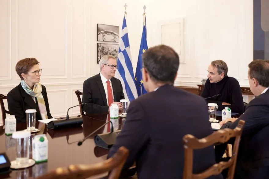 Ο Κυριάκος Μητσοτάκης συναντήθηκε σήμερα στο Μέγαρο Μαξίμου, με την πρόεδρο του Εποπτικού Συμβουλίου της Ευρωπαϊκής Κεντρικής Τράπεζας, Claudia Buch και τον πρόεδρο του Ενιαίου Συμβουλίου Εξυγίανσης (SRB) Dominique Laboureix.
