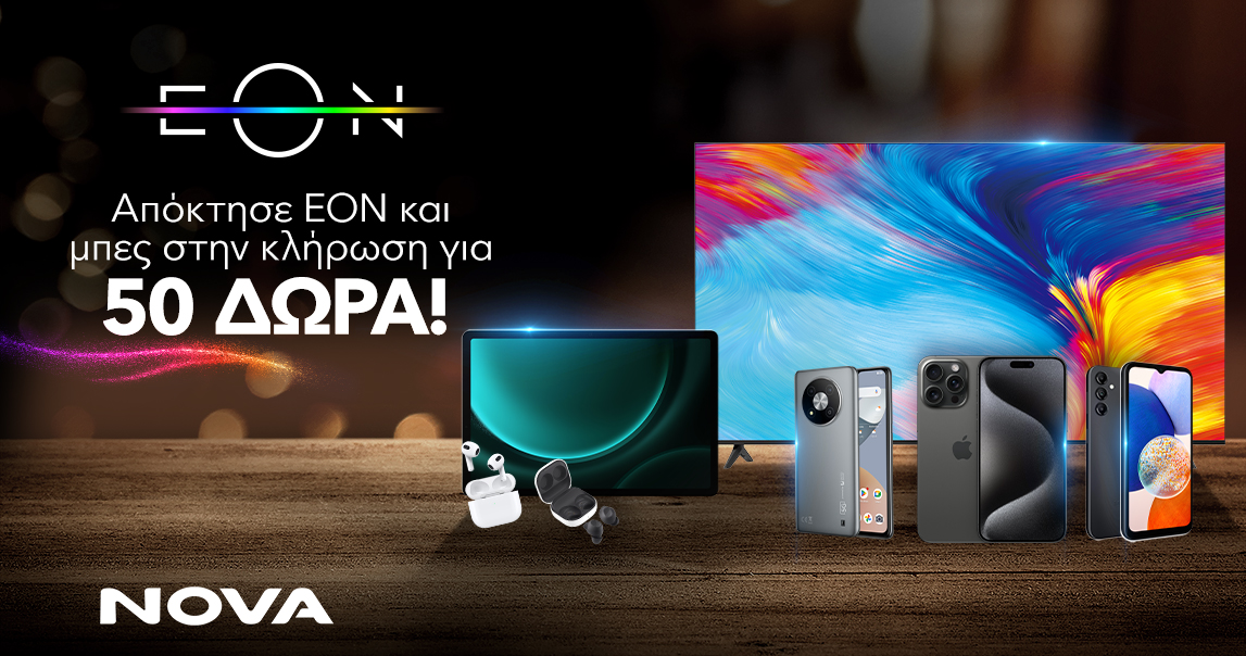 - Όσοι αποκτήσουν ΕΟΝ ή EON+ σε ένα Κατάστημα Nova ή μέσω call centers, παίρνουν μέρος στην μεγάλη κλήρωση για 50 δώρα τεχνολογίας!