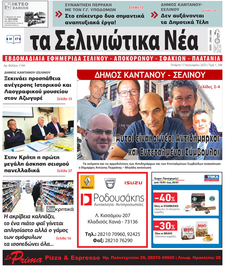 Κοινοποίηση Facebook Twitter LinkedIn Pinterest Email Copy Link Δείτε το πρωτοσέλιδο της τοπικής εφημερίδας Σελινιώτικα Νέα Σελινιώτικα Νέα