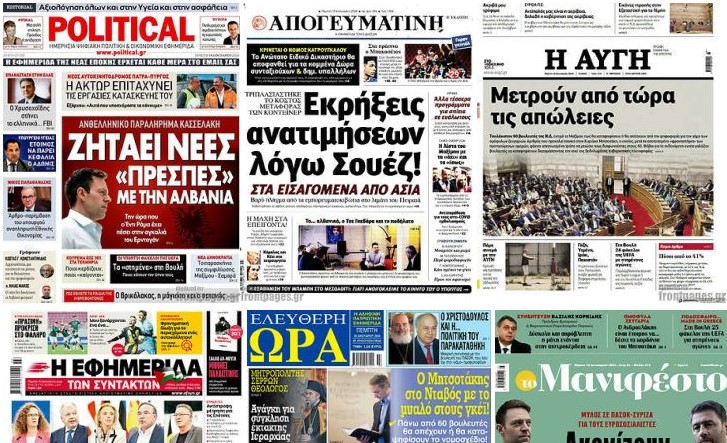 Κοινοποίηση Facebook Twitter LinkedIn Pinterest Email Copy Link Δείτε τα πρωτοσέλιδα των σημερινών εφημερίδων Πρωτοσέλιδα