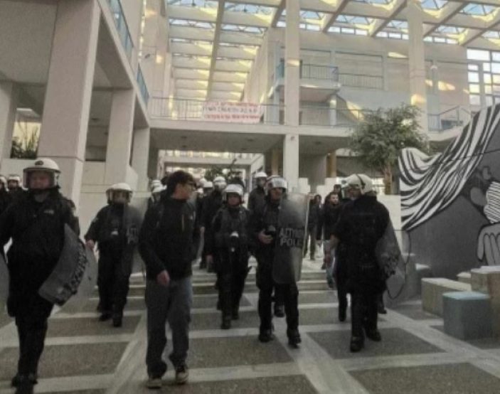 Σύμφωνα με τον «Παρατηρητή», τρεις τουλάχιστον κλούβες των ΜΑΤ βρέθηκαν στον χώρο, μπαίνοντας στην Νομική και απομακρύνοντας άτομα που βρισκόταν μέσα στο κτίριο και στη συνέχεια αποχώρησαν.