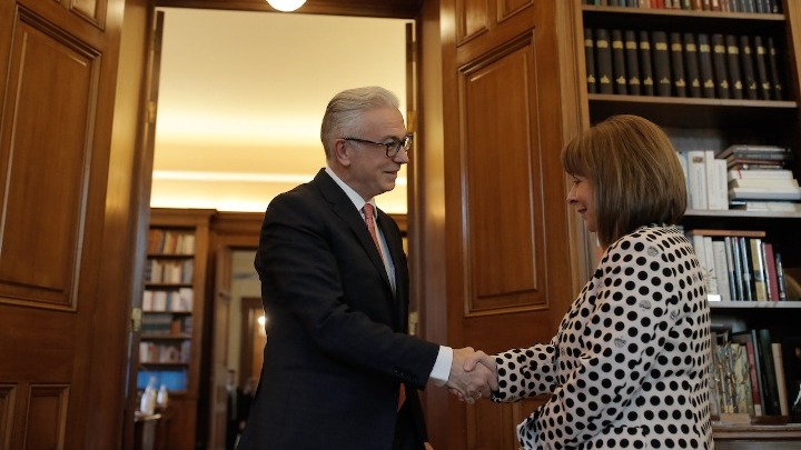 Η Πρόεδρος της Δημοκρατίας Κατερίνα Σακελλαροπούλου, συναντήθηκε, νωρίτερα σήμερα, με τον πρόεδρο της Κοινοβουλευτικής Συνέλευσης του Συμβουλίου της Ευρώπης, Θεόδωρο Ρουσόπουλο, ο οποίος την ενημέρωσε για τις προτεραιότητες, τα προβλήματα και τις προκλήσεις που έχει να αντιμετωπίσει το Συμβούλιο της Ευρώπης, το οποίο φέτος γιορτάζει τα 75 χρόνια του.