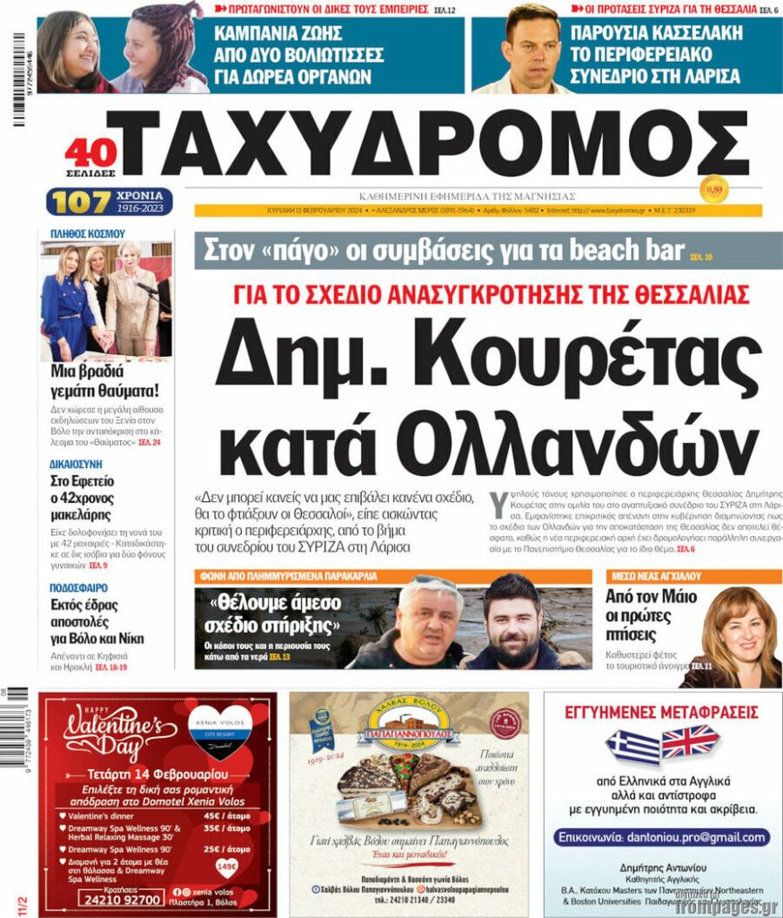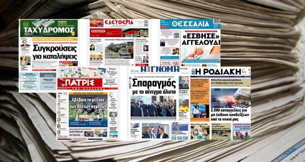 Κοινοποίηση Facebook Twitter LinkedIn Pinterest Email Copy Link Διαβάστε τα πρωτοσέλιδα των σημερινών τοπικών εφημερίδων Εφημερίδες τοπικές