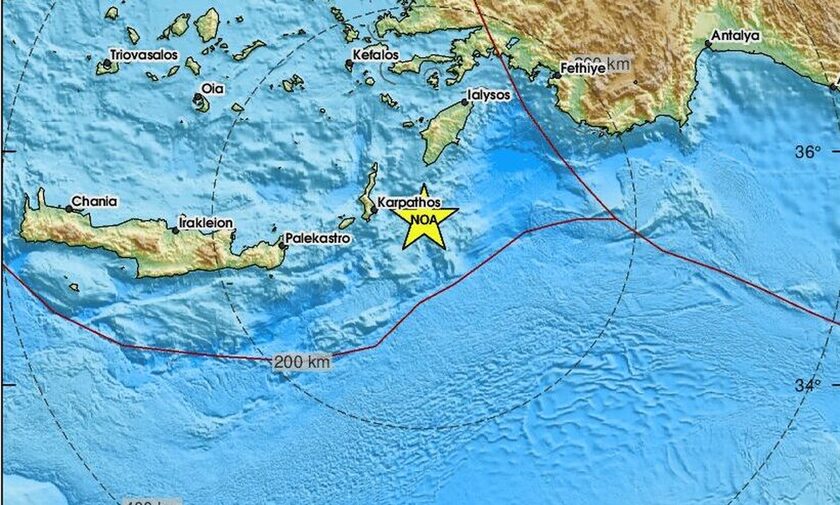 Σεισμός 3,9 Ρίχτερ σημειώθηκε στις 6:32 το πρωί της Τρίτης με επίκεντρο στον θαλάσσιο χώρο 67 χλμ. νοτιοανατολικά της Καρπάθου.