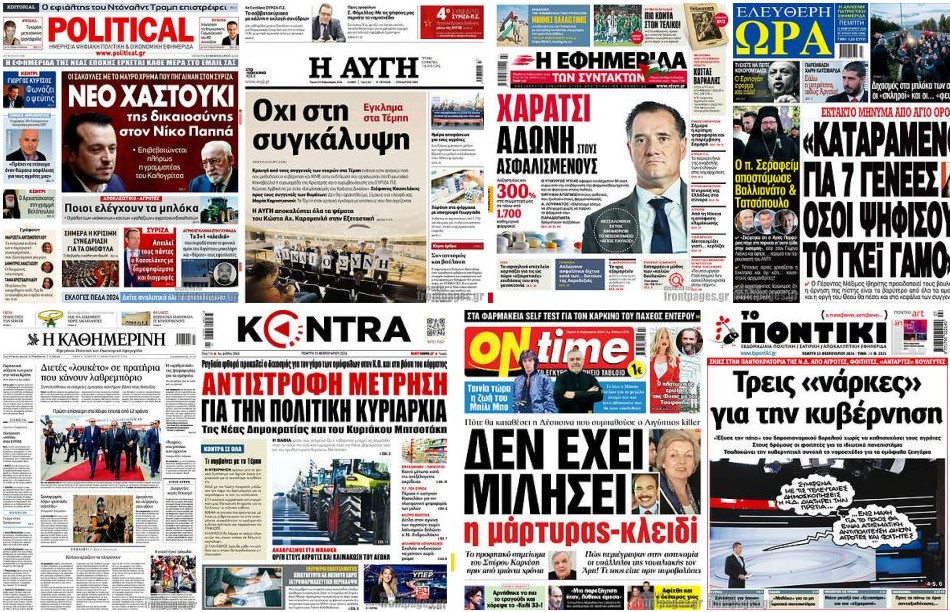 Κοινοποίηση Facebook Twitter LinkedIn Pinterest Email Copy Link Δείτε τα πρωτοσέλιδα των σημερινών εφημερίδων Πρωτοσέλιδα