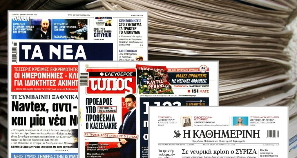Κοινοποίηση Facebook Twitter LinkedIn Pinterest Email Copy Link Διαβάστε τα πρωτοσέλιδα των σημερινών εφημερίδων Εφημερίδες Πρωτοσέλιδα