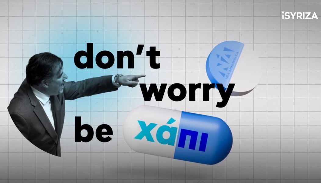 Το νέο σποτ του iSYRIZA, «Don’t worry, be χάπι» ασκεί σφοδρή κριτική στην κυβερνητική πολιτική για τη δημόσια υγεία, με εμφανή δόση ειρωνείας προς τον αρμόδιο υπουργό, Άδωνι Γεωργιάδη.