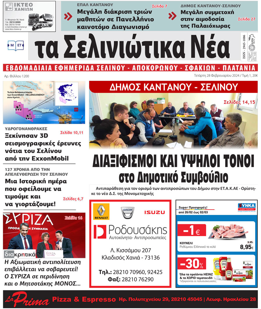 Κοινοποίηση Facebook Twitter LinkedIn Pinterest Email Copy Link Δείτε το πρωτοσέλιδο της τοπικής εφημερίδας «Σελινιώτικα Νέα» "Σελινιώτικα Νέα"