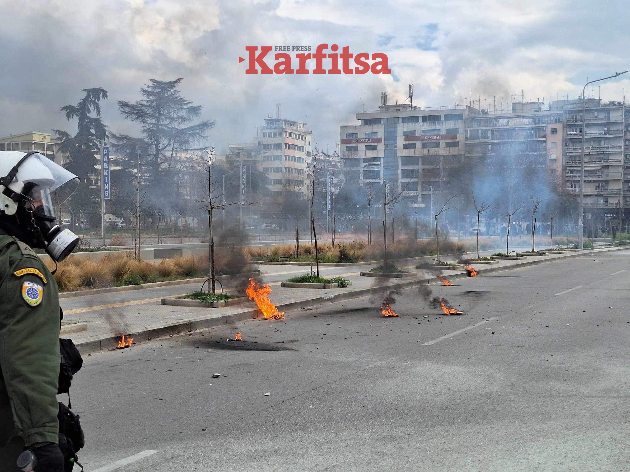 Επεισόδια ξέσπασαν πριν από λίγο στο κέντρο της Θεσσαλονίκης έξω από τον ΟΣΕ μετά από την πορεία για τη συμπλήρωση του ενός έτους από το πολύνεκρο δυστύχημα των Τεμπών.