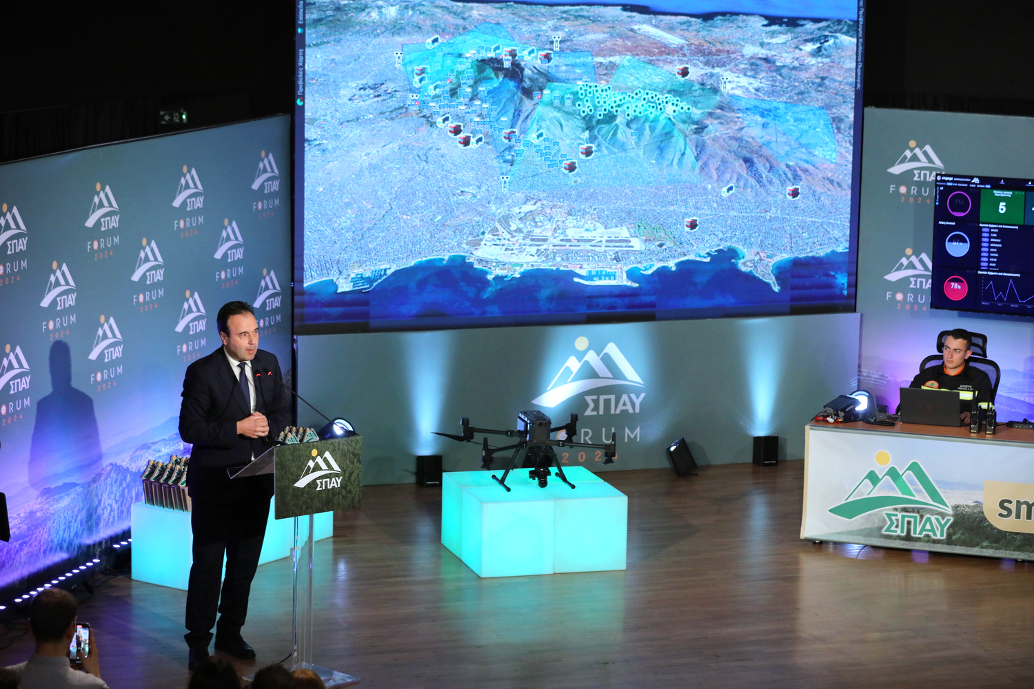 O Υπουργός Ψηφιακής Διακυβέρνησης, Δημήτρης Παπαστεργίου, στο πλαίσιο του χαιρετισμού του στο Forum ΣΠΑΥ 2024 «Τεχνητή Νοημοσύνη και Ανθεκτικές Πόλεις – το Μέλλον της Αυτοδιοίκησης», στις 11 Μαρτίου 2024, υπογράμμισε τη σημασία του έργου και μεταξύ άλλων δήλωσε: «Η κλιματική κρίση καθιστά επιλογή «μονόδρομο» την υιοθέτηση πολιτικών που θα ενισχύουν την Πολιτική Προστασία, μέσω της συνεργασίας όλων των αρμόδιων φορέων και της αξιοποίησης των τεχνολογιών αιχμής. Με το πρόγραμμα για τους μικροδορυφόρους, το οποίο υλοποιούμε ως Υπουργείο Ψηφιακής Διακυβέρνησης αξιοποιώντας τους πόρους του Ταμείου Ανάκαμψης, στηρίζουμε τη στρατηγική επιλογή της Κυβέρνησης να έχουμε ως χώρα τα κατάλληλα εργαλεία για να σχεδιάζουμε αποτελεσματικότερα τις πολιτικές που σχετίζονται στενά μεταξύ άλλων και με τα ζητήματα πολιτικής προστασίας. Επιπλέον, σε συνεργασία με τα Υπουργεία Εσωτερικών και Κλιματικής Κρίσης και Πολιτικής Προστασίας, υλοποιούμε ενόψει της νέας αντιπυρικής περιόδου μια πλατφόρμα για τα ακαθάριστα οικόπεδα, δίνοντας ακόμη περισσότερα εφόδια στους Δήμους για την κοινή μάχη που έχουμε. Αποτελεί ένα κρίσιμης σημασίας «στοίχημα» να αξιοποιήσουμε τις δυνατότητες που μας παρέχει η Τεχνητή Νοημοσύνη σε όλα τα επίπεδα της Πολιτικής Προστασίας και διαχείρισης κρίσεων, προκειμένου να βελτιώσουμε τη ζωή των πολιτών και να προστατεύσουμε το περιβάλλον».