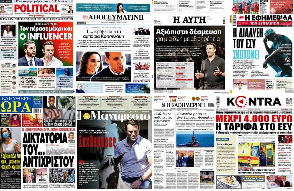 Κοινοποίηση Facebook Twitter LinkedIn Pinterest Email Copy Link Δείτε τα πρωτοσέλιδα των σημερινών εφημερίδων Πρωτοσέλιδα