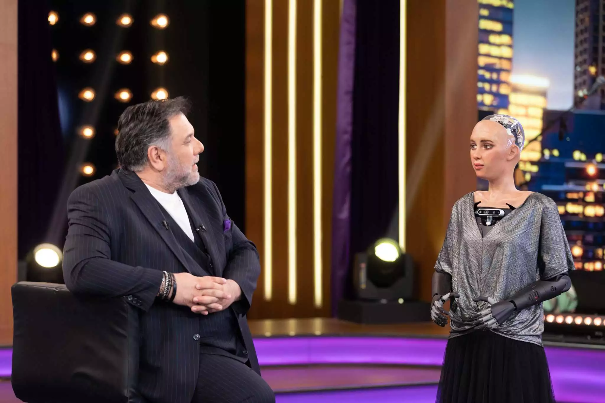Ο Γρηγόρης Αρναούτογλου υποδέχτηκε στο στούντιο της εκπομπής “The 2Night Show” την “Sophia the Robot” και την Ανδριάνα Μανέττα, η οποία εξήγησε με λεπτομέρειες τον τρόπο λειτουργίας του ανθρωπόμορφου ρομπότ και τις εξελίξεις γύρω από την τεχνητή νοημοσύνη.