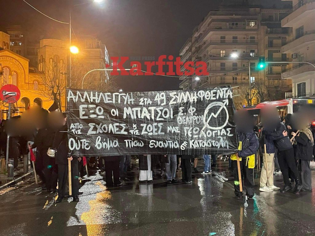 Πορεία πραγματοποιείται αυτή την ώρα στο κέντρο της πόλης με αφορμή την σύλληψη των 49 ατόμων έπειτα από την αστυνομική επιχείρηση που πραγματοποιήθηκε το περασμένο Σάββατο εντός της Σχολής Θετικών Επιστημών.