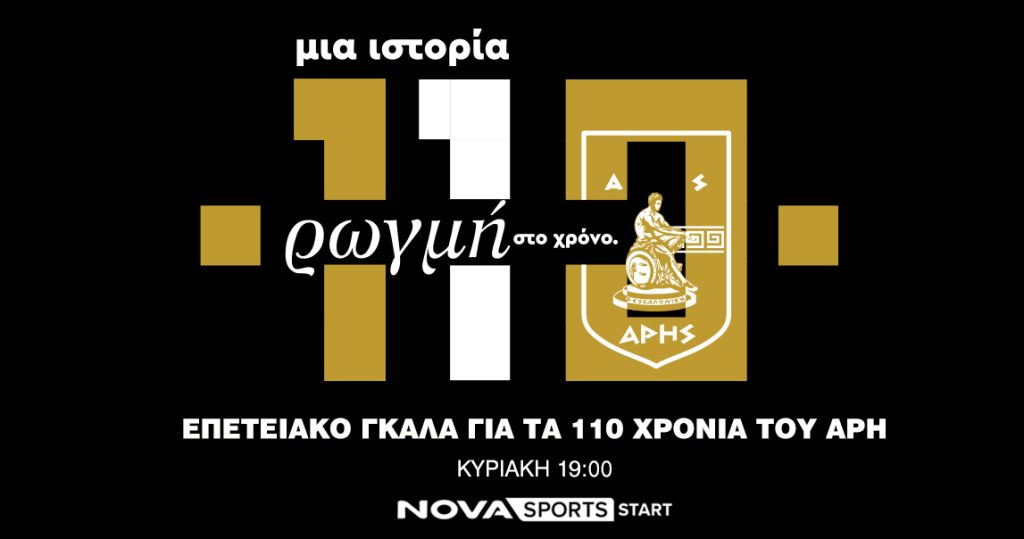 Ο Άρης γιορτάζει τα 110 χρόνια ζωής, «Μια ιστορία ρωγμή στο χρόνο» και το Novaspοrts θα είναι εκεί! Την Κυριακή 24 Μαρτίου στις 19:00 οι συνδρομητές θα έχουν την ευκαιρία να παρακολουθήσουν στο Novasports Start το επετειακό γκαλά που διοργανώνει η ΠΑΕ Άρης στον κινηματογράφο «Ολύμπιον» στη Θεσσαλονίκη. Στην παρουσίαση για τη μετάδοση στα αθλητικά κανάλια της Nova θα είναι οι δημοσιογράφοι του Novasports, Γιαννίκος Δούσκας και Γιάννης Πάγκος, ενώ το ρεπορτάζ θα μεταφέρει ο Ευγένιος Δαδαλιάρας.