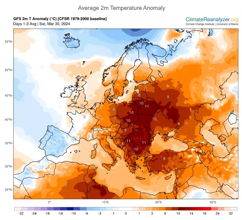 Τη Δευτέρα (1/4/24) η θερμοκρασία θα σημειώσει νέα άνοδο σε όλη τη χώρα και στις περισσότερες περιοχές θα κυμανθεί σε επίπεδα υψηλότερα, από τα κανονικά για την εποχή, κατά 8 με 10 βαθμούς!