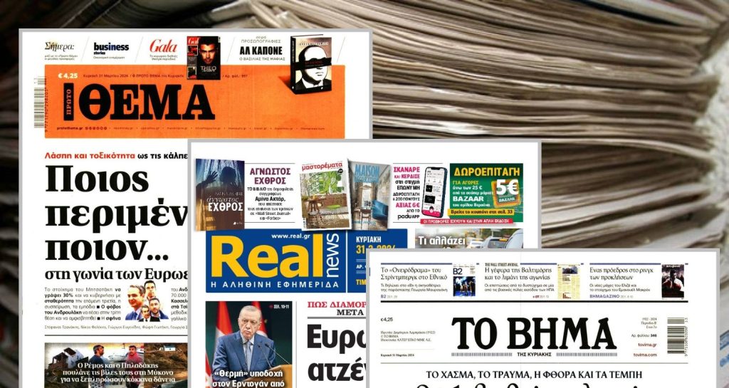 Κοινοποίηση Facebook Twitter LinkedIn Pinterest Email Copy Link Διαβάστε τα πρωτοσέλιδα των σημερινών εφημερίδων κυριακάτικες εφημερίδες Πρωτοσέλιδα