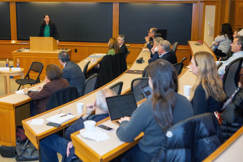 Η υπουργός απάντησε διεξοδικά στις ερωτήσεις που δέχτηκε από καθηγητές και φοιτητές, ενώ δεν έκρυψε τη συγκίνησή της για το γεγονός ότι επέστρεψε, 20 χρόνια μετά την αποφοίτησή της από το Harvard Law School, και πάλι στη Μασαχουσέτη για να μιλήσει σε δύο από τα κορυφαία πανεπιστήμια του κόσμου.