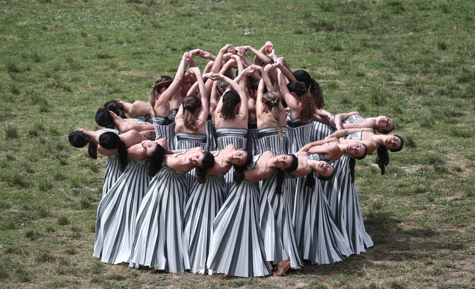 Μετά το άναμμα τη Ολυμπιακής Φλόγας ακολούθησε ο Χορός των Ιερειών και των 15 Κούρων στο χορευτικό που δημιούργησε και σκηνοθέτησε η Χορογράφος Αρτεμις Ιγνατίου, με ενδυμασίες της Μαίρης Κατράντζου, υπό τους ήχους της μουσικής του συνθέτη Δημήτρη Παπαδημητρίου, πριν η Πρωθιέρεια Μαίρη Μηνά εισέλθει με την Ολυμπιακή Φλόγα στο Αρχαίο Στάδιο για να την παραδώσει στoν πρώτο Λαμπαδηδρόμο, Χρυσό Ολυμπιονίκη της Κωπηλασίας, Στέφανο Ντούσκο .