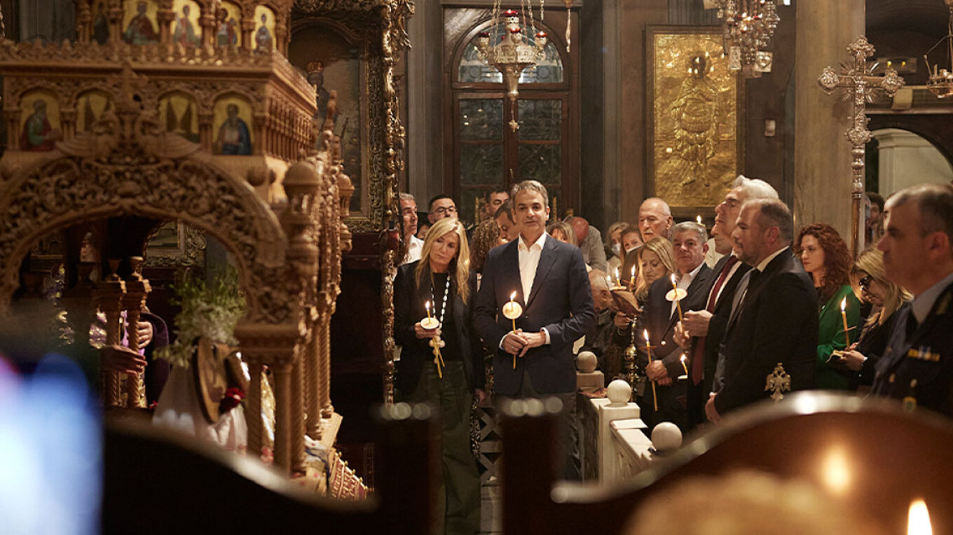 Την Ακολουθία και Περιφορά του Επιταφίου στον Ιερό Ναό Ευαγγελιστρίας Τήνου, παρακολούθησε το βράδυ της Μεγάλης Παρασκευής ο Κυριάκος Μητσοτάκης.
