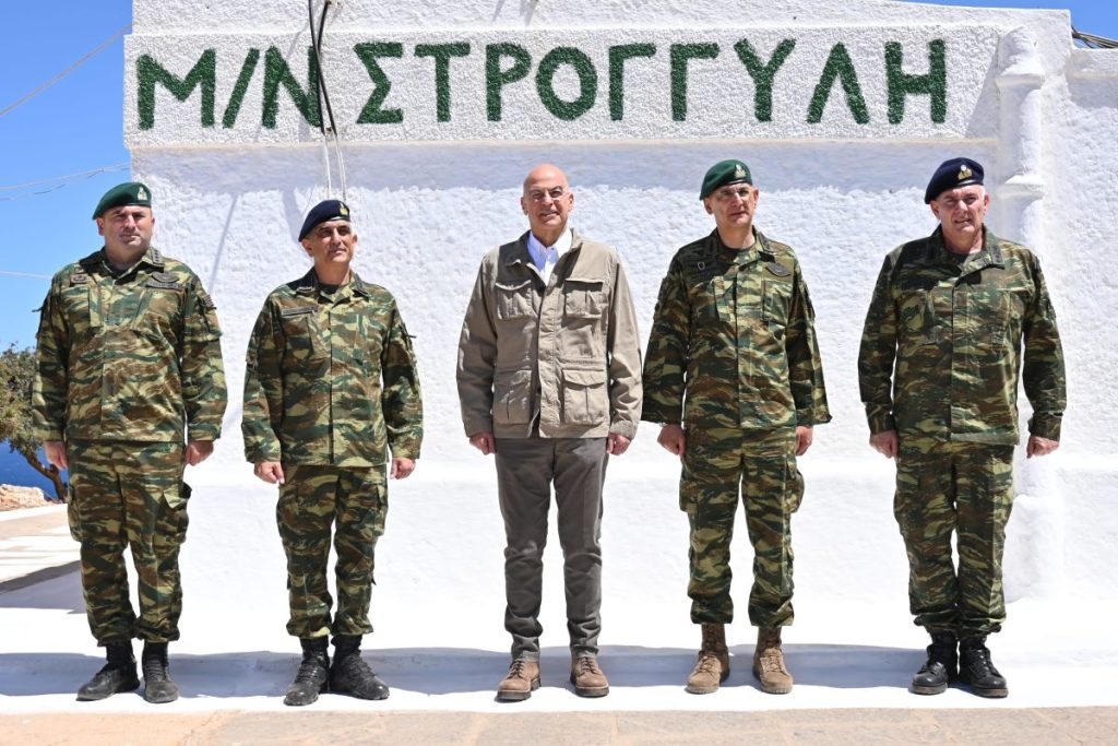 Ο υπουργός Εθνικής ‘Αμυνας Νίκος Δένδιας, επισκέφθηκε σήμερα, Μεγάλο Σάββατο 4 Μαΐου, επιτηρητικά φυλάκια της περιοχής ευθύνης της 95 Ανώτερης Διοίκησης Ταγμάτων Εθνοφυλακής (ΑΔΤΕ) στο νησιωτικό σύμπλεγμα Μεγίστης, συνοδευόμενος από τον αρχηγό ΓΕΕΘΑ στρατηγό Δημήτριο Χούπη, τον διοικητή της Ανώτερης Διοίκησης Εσωτερικού και Νήσων (ΑΣΔΕΝ) αντιστράτηγο Εμμανουήλ Θεοδώρου και τον διοικητή της 95 (ΑΔΤΕ) υποστράτηγο Εμμανουήλ Χατζή. Ο κ. Δένδιας επισκέφτηκε κατ’ αρχάς το φυλάκιο Στρογγύλης, όπου παρακολούθησε την Ακολουθία της Αναστάσεως στον Ιερό Ναό Αγίου Νικολάου.