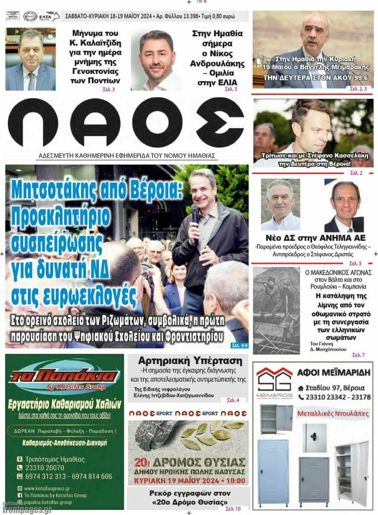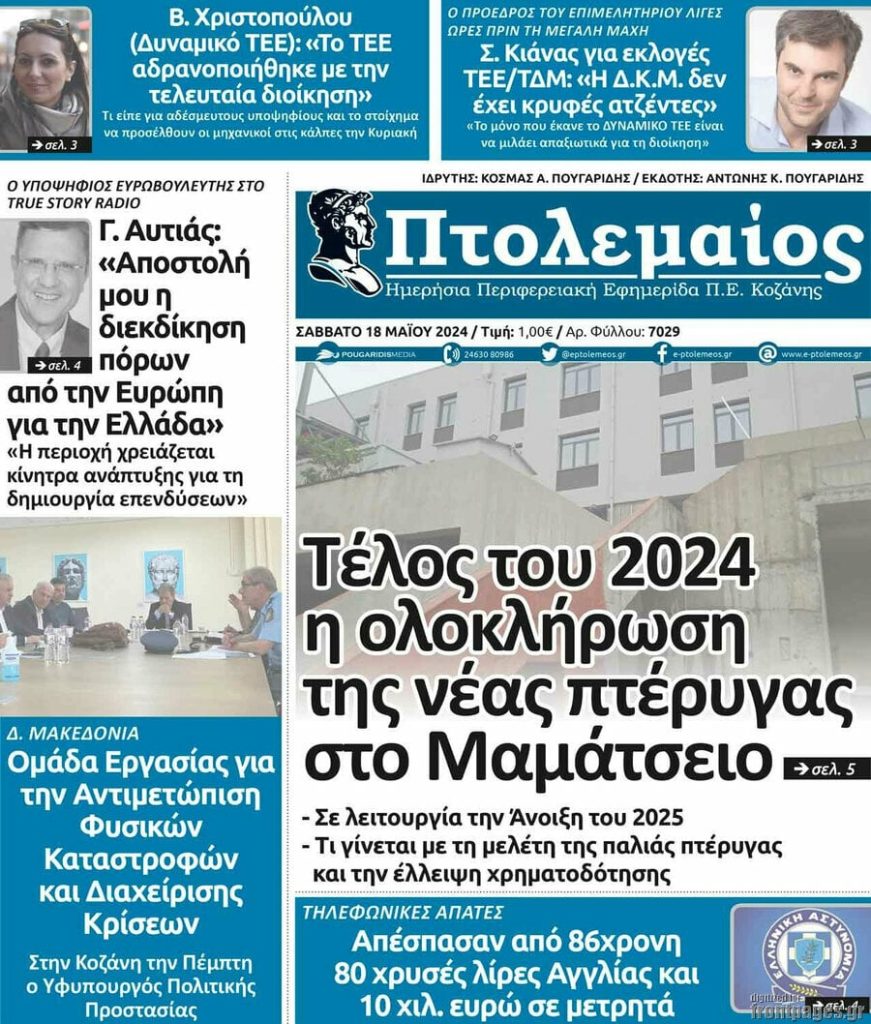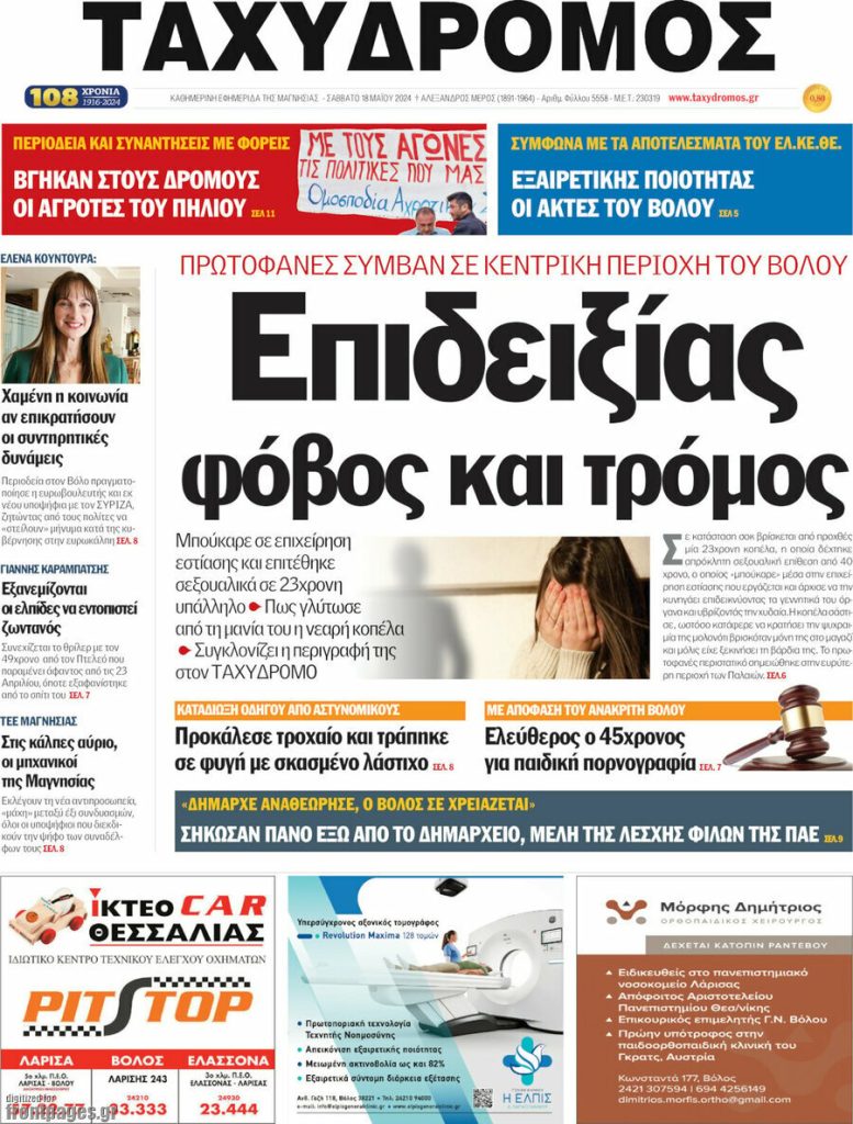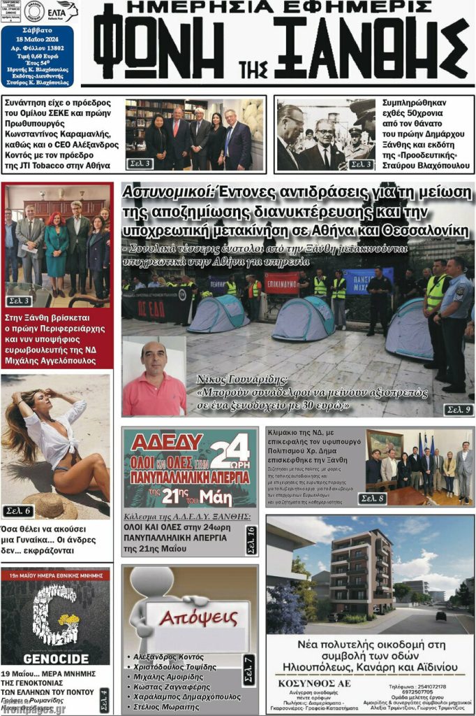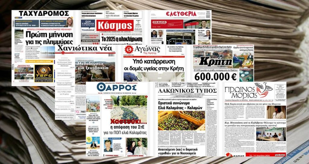 Διαβάστε τα πρωτοσέλιδα των σημερινών τοπικών εφημερίδων