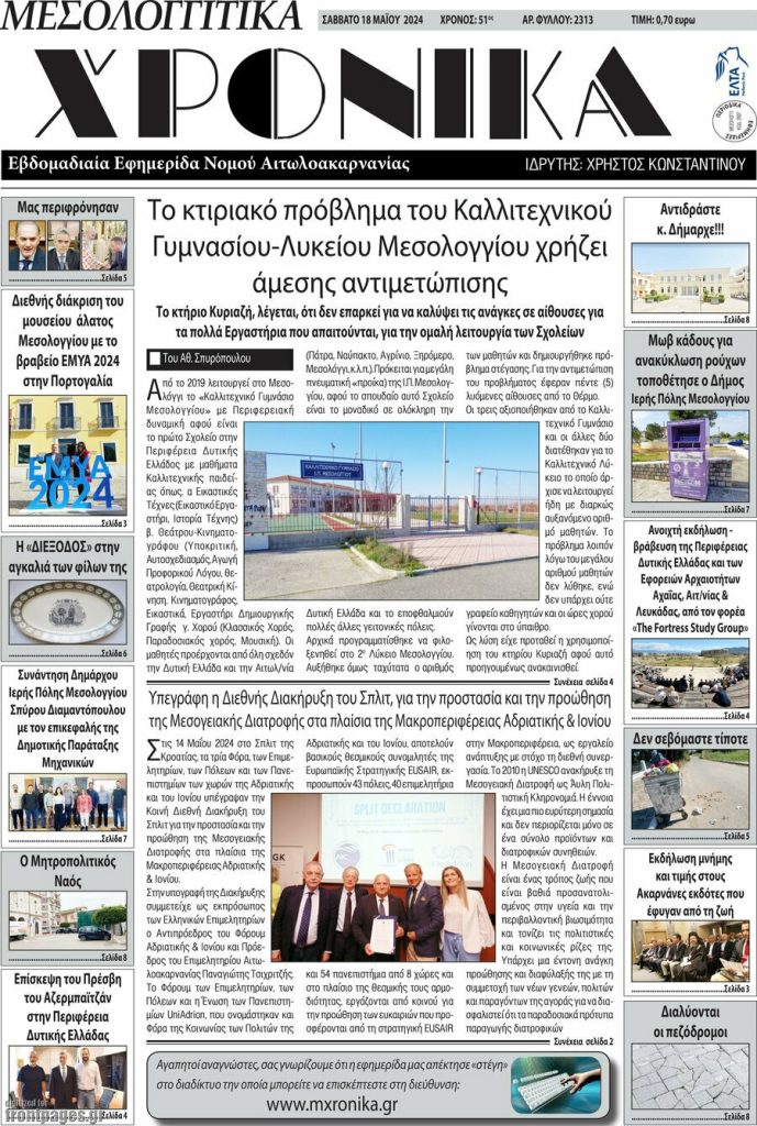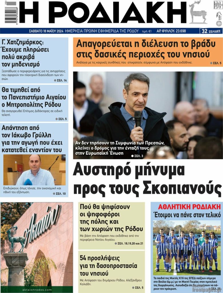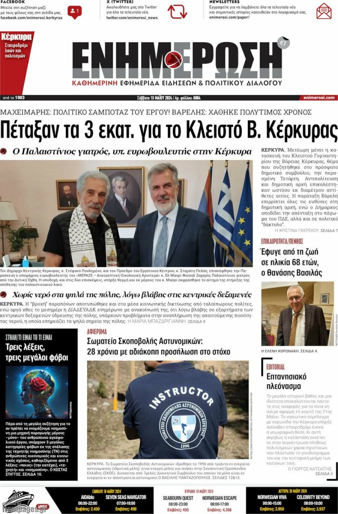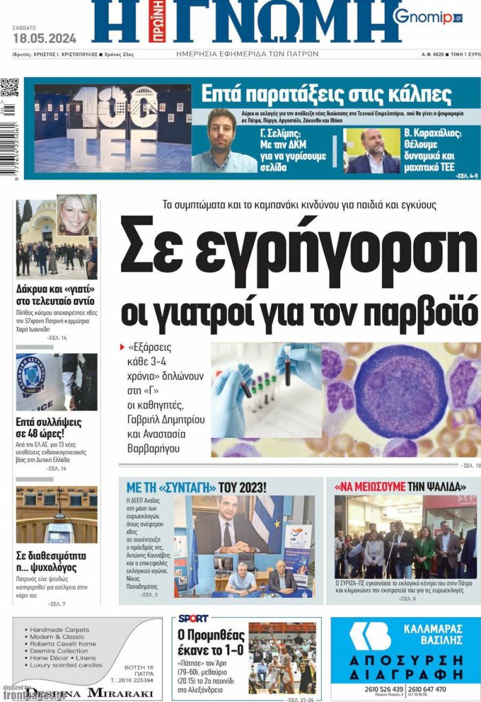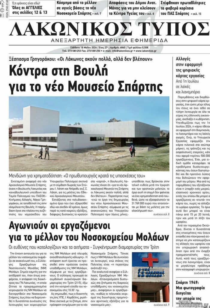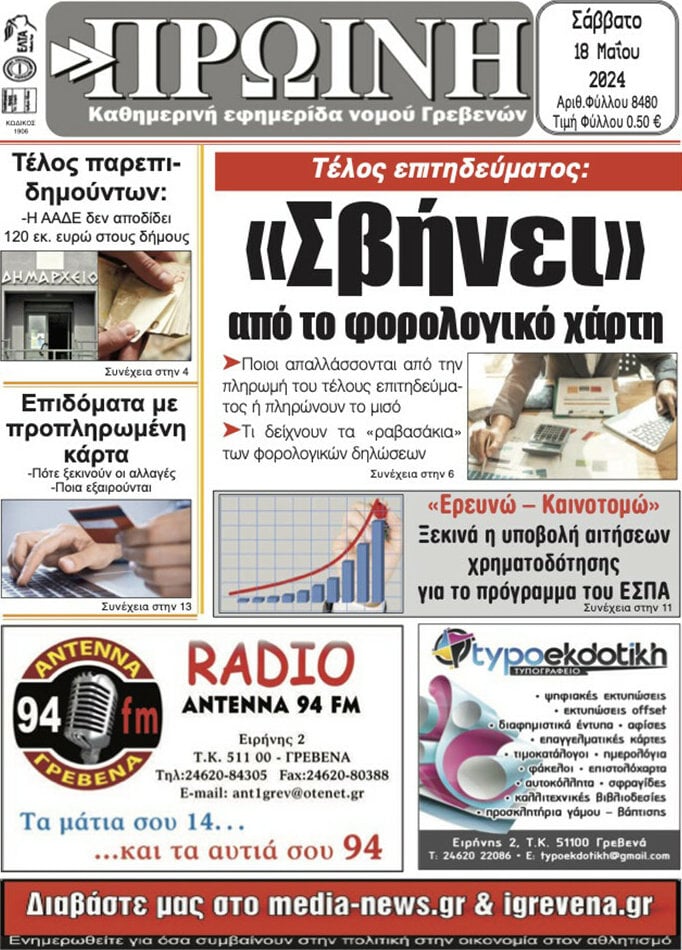 Διαβάστε τα πρωτοσέλιδα των σημερινών τοπικών εφημερίδων