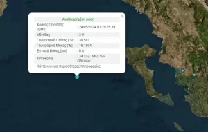 Σεισμός μεγέθους 3,9 βαθμών της κλίμακας Ρίχτερ σημειώθηκε το πρωί της Παρασκευής στις 06:29, σε υποθαλάσσια περιοχή του Ιονίου Πελάγους, κοντά στις δυτικές ακτές της Κέρκυρας σύμφωνα με το Γεωδυναμικό Ινστιτούτο.