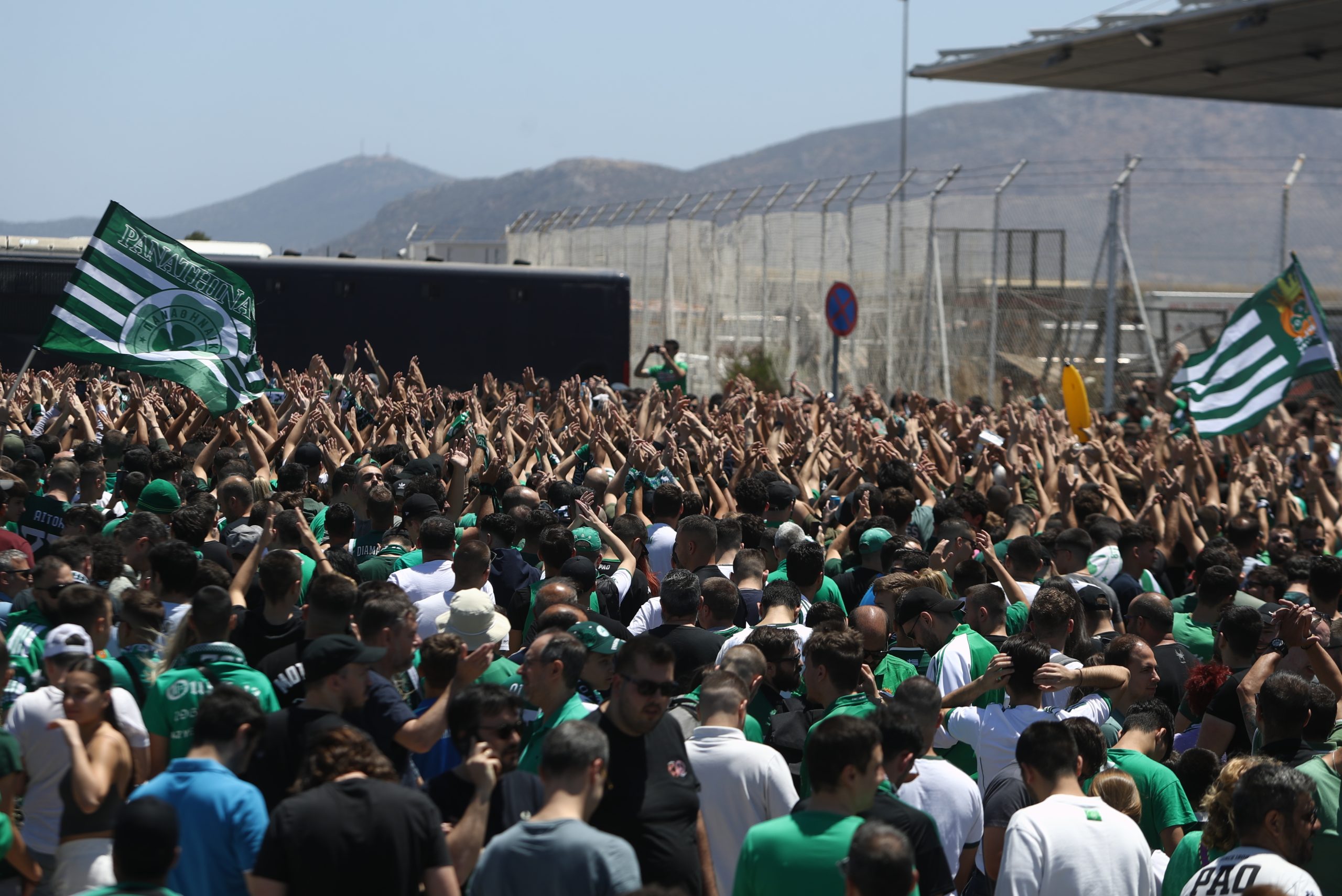 Από πολύ νωρίς, οι φίλοι του Παναθηναϊκού είχαν πάει στο αεροδρόμιο και περιμένουν με ανυπομονησία τους πράσινους θριαμβευτές.