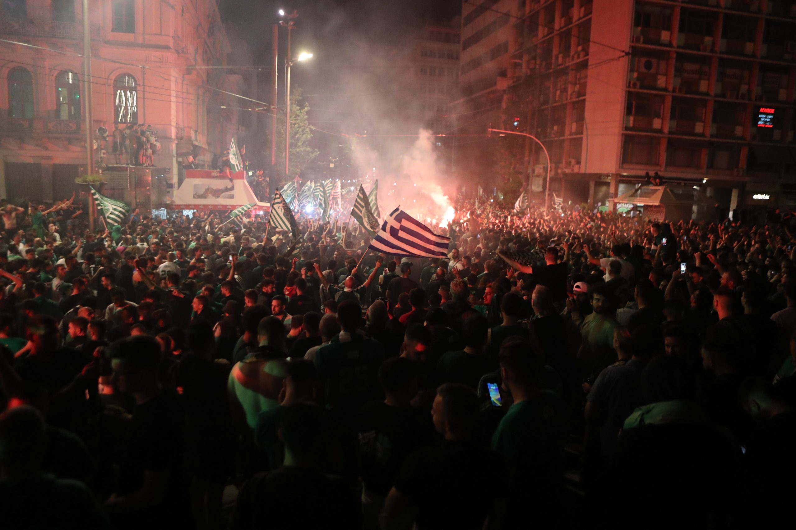Οι γειτονιές της Αθήνας με «προπύργιο» τους Αμπελόκηπους και την Ομόνοια γέμισαν με χιλιάδες οπαδούς των «πράσινων» να πανηγυρίζουν για την σπουδαία νίκη.