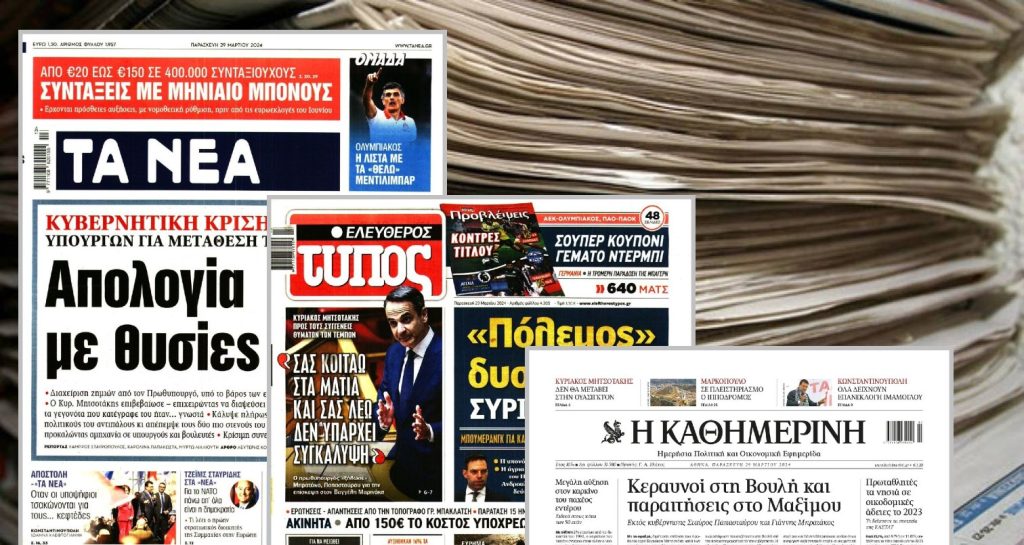 Κοινοποίηση Facebook Twitter LinkedIn Pinterest Email Copy Link Διαβάστε τα πρωτοσέλιδα των σημερινών εφημερίδων Εφημερίδες Νέα Πρωτοσέλιδα