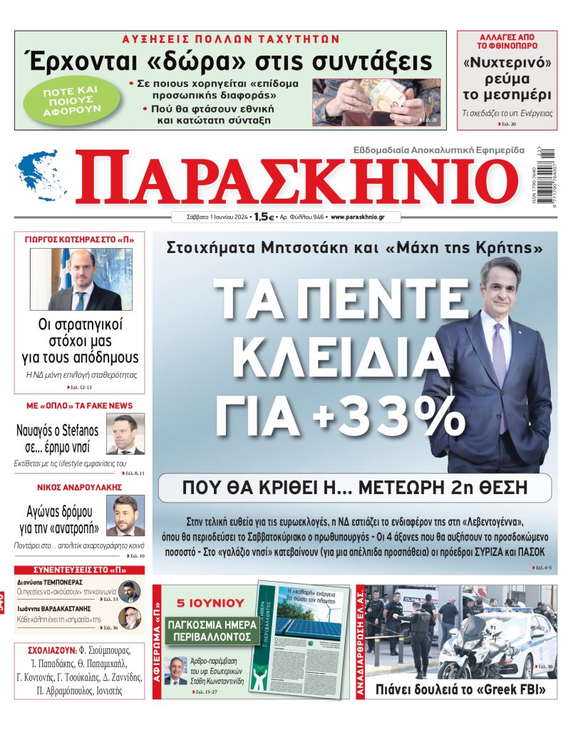 Μη χάσετε το Σάββατο 1 Ιουνίου το «ΠΑΡΑΣΚΗΝΙΟ», που κυκλοφορεί με ρεπορτάζ, έρευνες και παρεμβάσεις οι οποίες θα συζητηθούν.