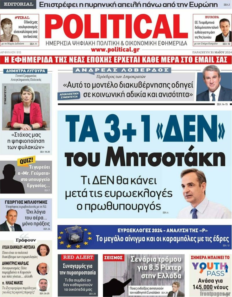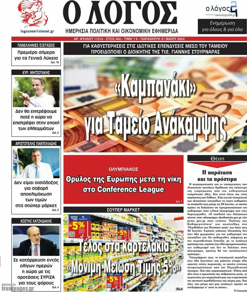 Κοινοποίηση Facebook Twitter LinkedIn Pinterest Email Copy Link Δείτε τα πρωτοσέλιδα των σημερινών εφημερίδων Εφημερίδες Νέα Πρωτοσέλιδα
