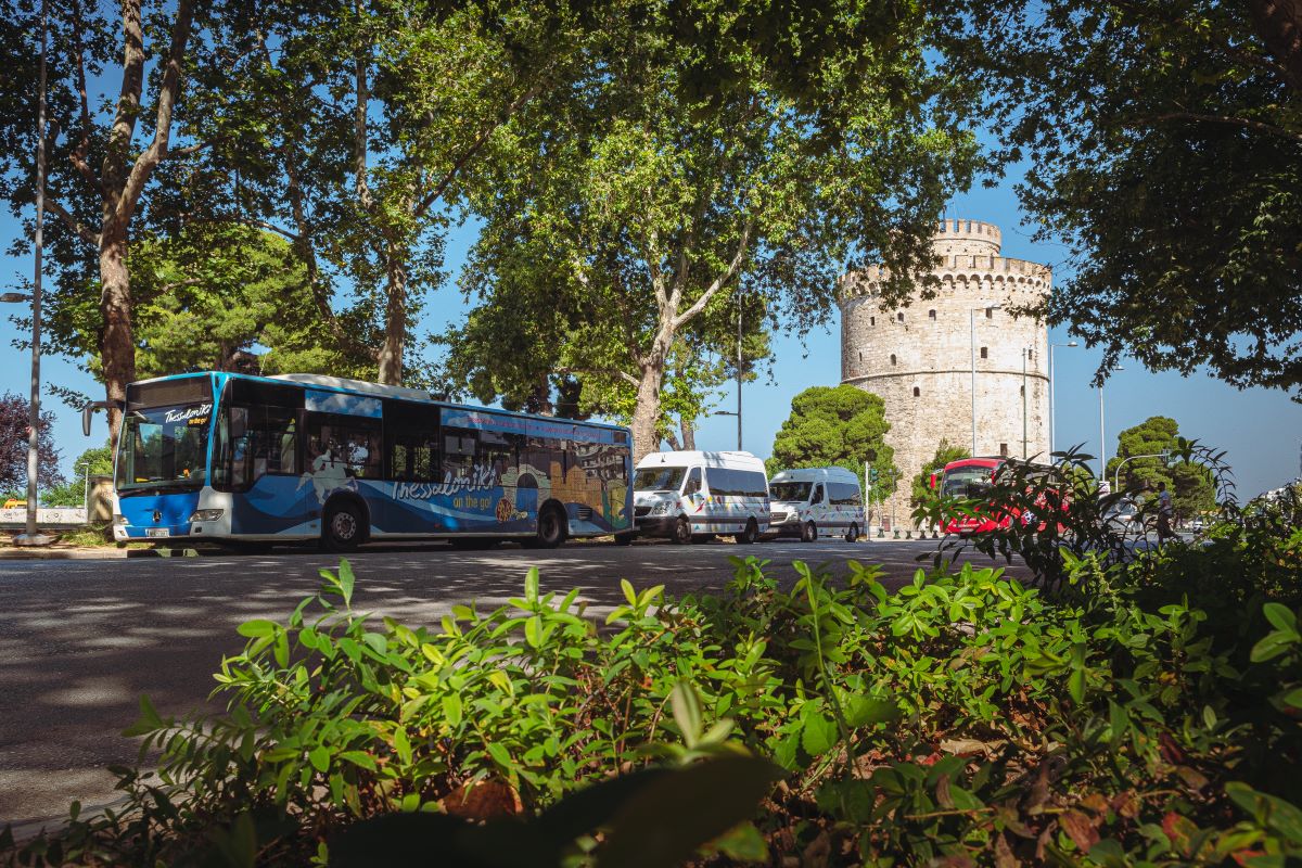 Φτερά….στις ρόδες του έχει βάλει το λεωφορείο του ΟΑΣΘ που είναι ντυμένο διαφορετικά από όλα τα άλλα και εκτελεί την Πολιτιστική Γραμμή 50 του οργανισμού. O αριθμός του δηλώνει τα ακριβή λεπτά που χρειάζονται ώστε αυτό να ξεναγήσει τους επισκέπτες στην πόλη σε όλα τα σημαντικά μνημεία. Οι Έλληνες και ξένοι τουρίστες που επισκέπτονται τη Θεσσαλονίκη, όχι μόνο του δίνουν ψήφο εμπιστοσύνης με ολοένα και μεγαλύτερη ένταση, αλλά εκδηλώνουν και συναισθήματα θαυμασμού και χαράς σε όλη τη διαδρομή, ιδίως όταν αυτό παίρνει τη στροφή στην Πορτάρα και κατευθύνεται προς την πλατεία Αναργύρων.
