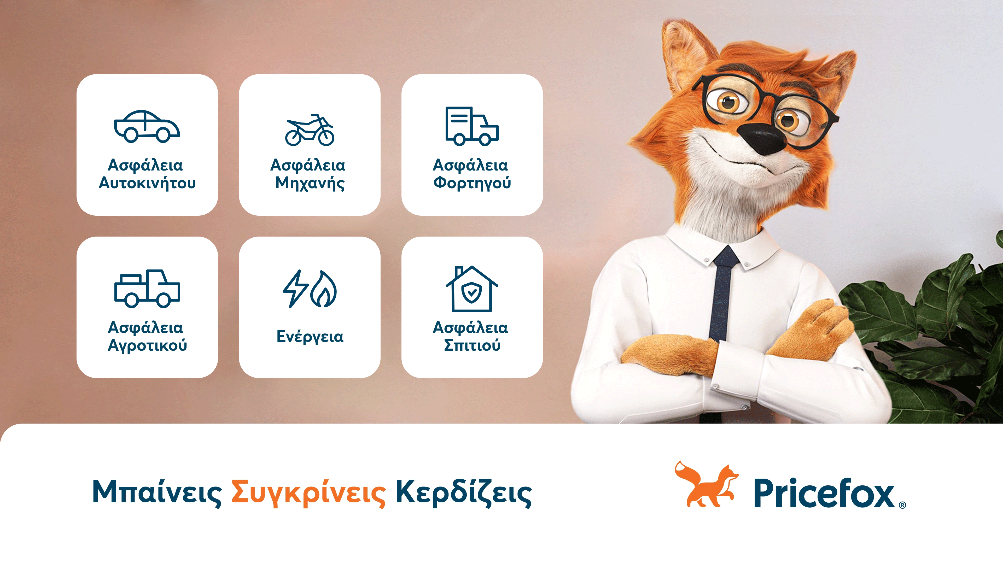 Εκτός από συγκριτικές έρευνες και tips εξοικονόμησης, στο Pricefox.gr μπορείς να αγοράσεις τη φθηνότερη ασφάλεια αυτοκινήτου, να ασφαλίσεις το σπίτι σου (κερδίζοντας και την έκπτωση του ΕΝΦΙΑ), αλλά και να αλλάξεις πάροχο ενέργειας για να πας στο πιο συμφέρον πρόγραμμα της αγοράς.