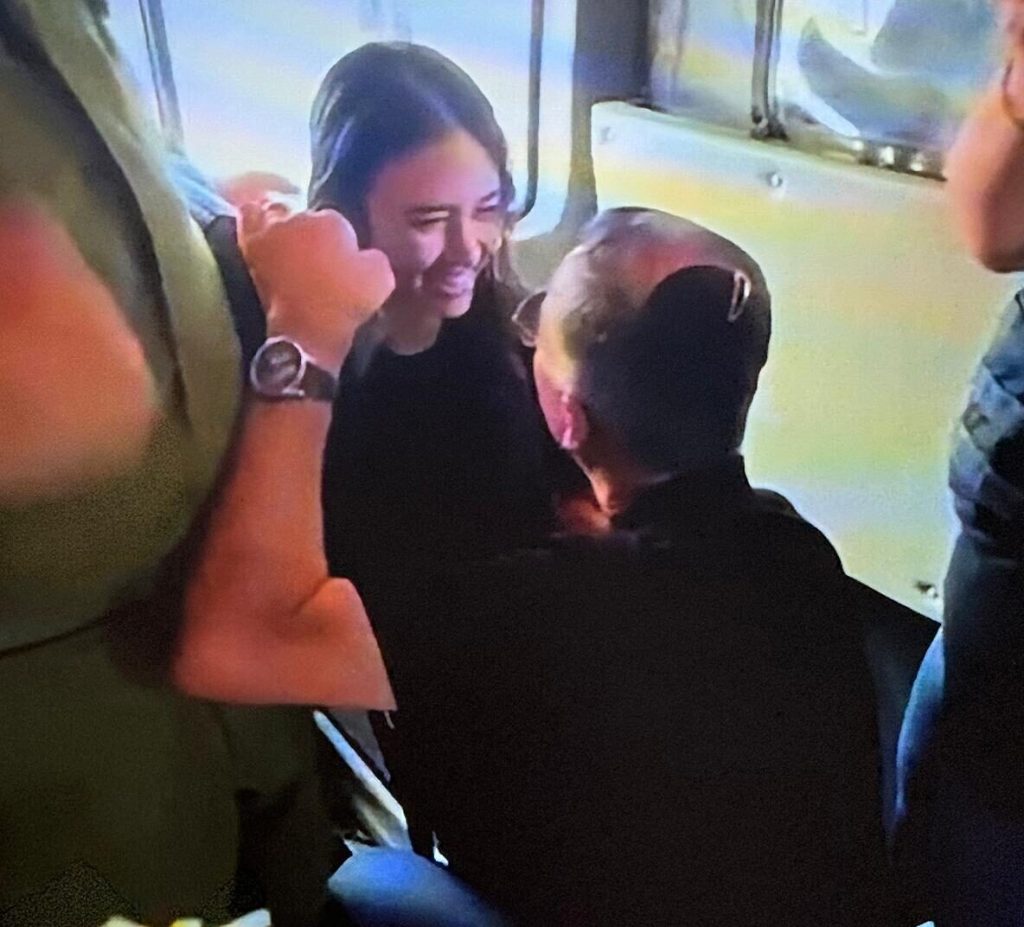 Το ισραηλινό τηλεοπτικό δίκτυο News 12 μετέδωσε πλάνα, όπου εμφανίζεται η Αργκαμάνι να συναντά και πάλι τον πατέρα της, ενώ χαμογελάει και τον αγκαλιάζει.