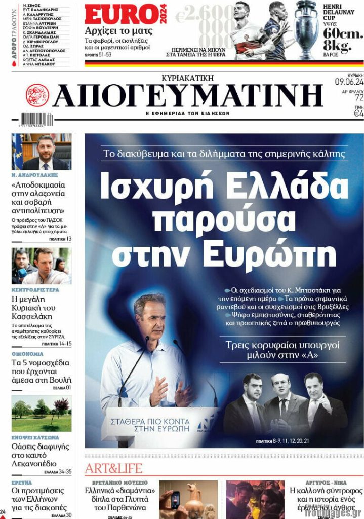 Κοινοποίηση Facebook Twitter LinkedIn Pinterest Email Copy Link Διαβάστε τα πρωτοσέλιδα των σημερινών εφημερίδων Εφημερίδες κυριακάτικες εφημερίδες Νέα Πρωτοσέλιδα