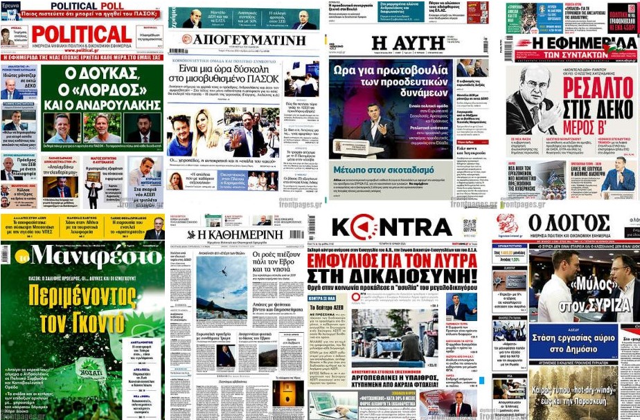 Κοινοποίηση Facebook Twitter LinkedIn Pinterest Email Copy Link Δείτε τα πρωτοσέλιδα των σημερινών εφημερίδων Πρωτοσέλιδα
