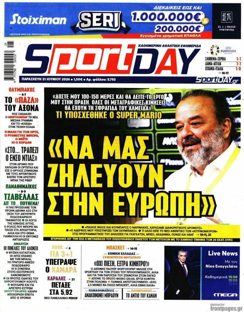 Κοινοποίηση Facebook Twitter LinkedIn Pinterest Email Copy Link Δείτε τα πρωτοσέλιδα των σημερινών αθλητικών εφημερίδων Aθλητικές Εφημερίδες Νέα Πρωτοσέλιδα