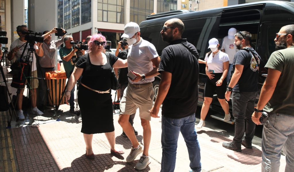Στην Εισαγγελία Πειραιά οδηγήθηκαν οι δεκατρείς ημεδαποί επιβαίνοντες θαλαμηγού σκάφους που συνελήφθησαν από αξιωματικούς της διεύθυνσης αντιμετώπισης εγκλημάτων εμπρησμού της Πυροσβεστικής ως υπαίτιοι πρόκλησης πυρκαγιάς σε δασική έκταση, στην περιοχή Μπίστι, στο νησί της Ύδρας, τις βραδινές ώρες, της 21ης Ιουνίου 2024.