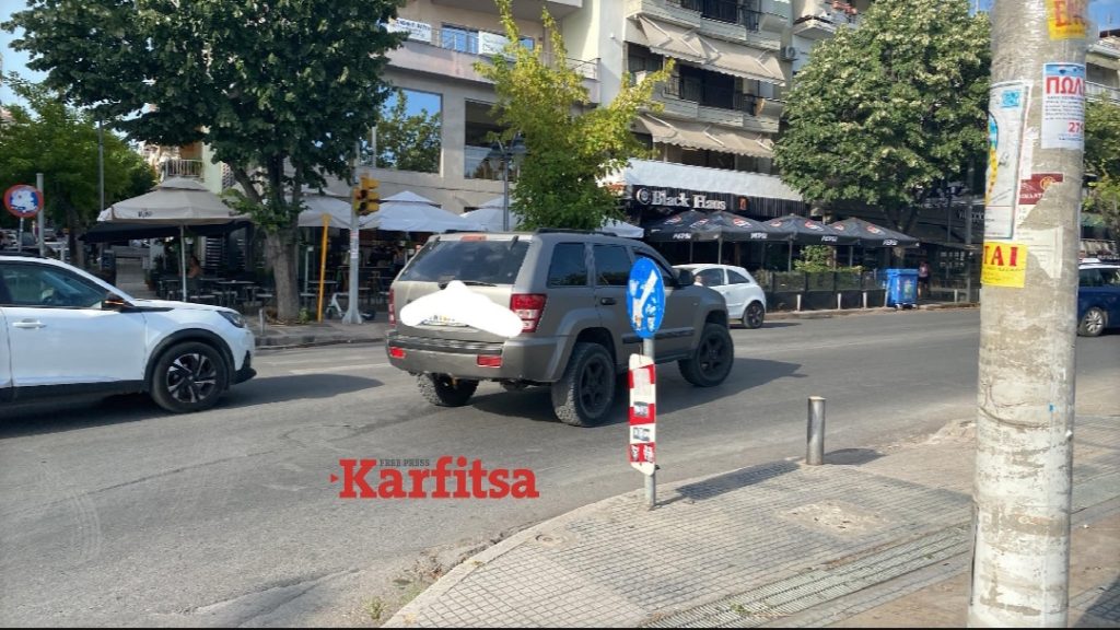 Δεν πίστευαν στα μάτια τους οδηγοί και περαστικοί στην οδό Λαμπράκη με Κλεάνθους γωνία όταν αντίκρισαν ένα παρατημένο τζιπ στη μέση του δρόμου.
