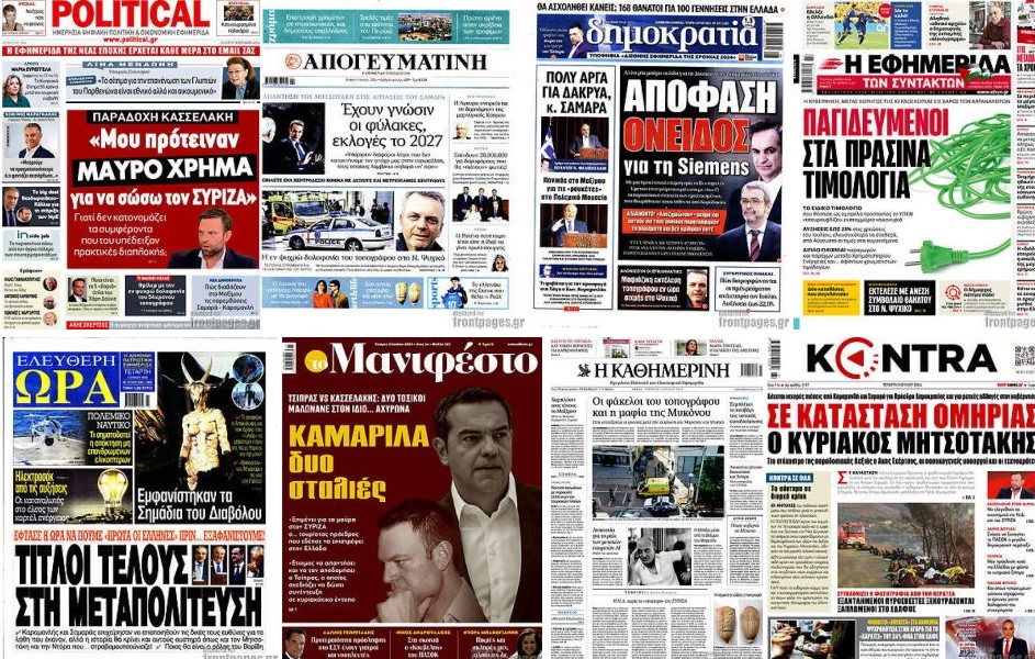 Κοινοποίηση Facebook Twitter LinkedIn Pinterest Email Copy Link Δείτε τα πρωτοσέλιδα των σημερινών εφημερίδων Πρωτοσέλιδα