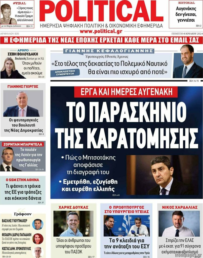 Κοινοποίηση Facebook Twitter LinkedIn Pinterest Email Copy Link Δείτε τα πρωτοσέλιδα των σημερινών εφημερίδων ειδήσεις Εφημερίδες Νέα Πρωτοσέλιδα
