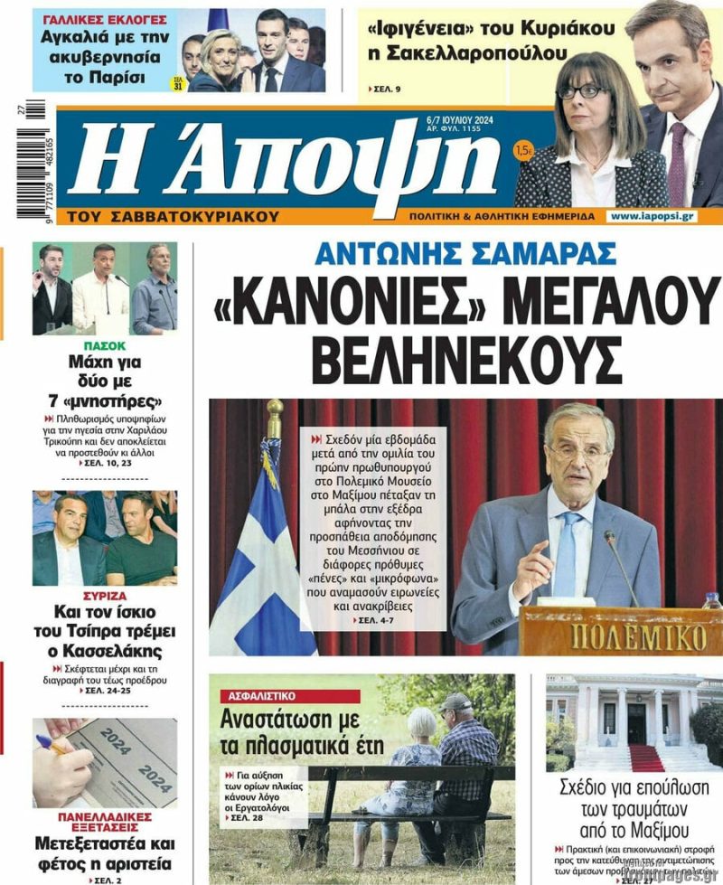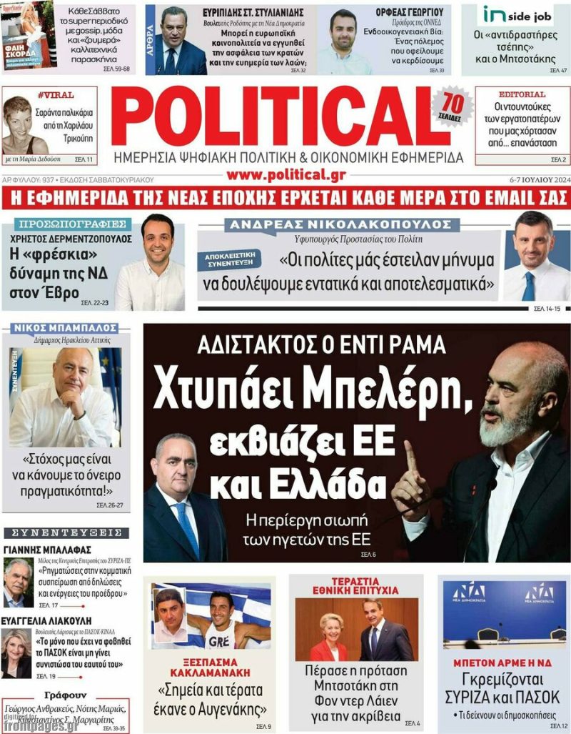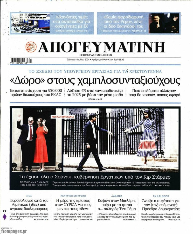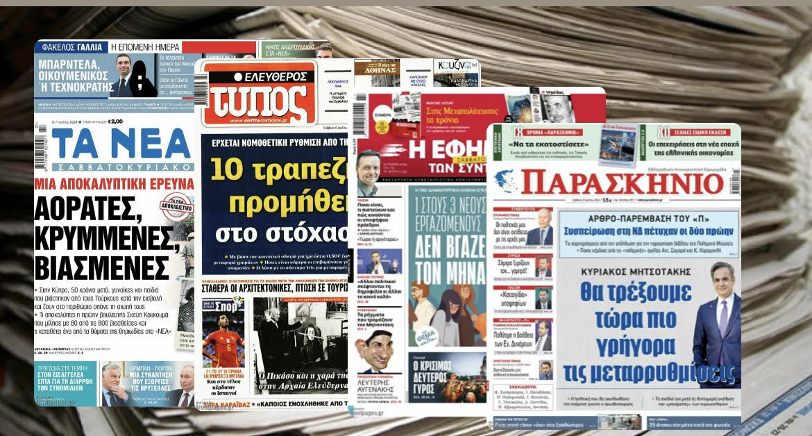Κοινοποίηση Facebook Twitter LinkedIn Pinterest Email Copy Link Δείτε τα πρωτοσέλιδα των σημερινών εφημερίδων ειδήσεις εφημερίδα Νέα
