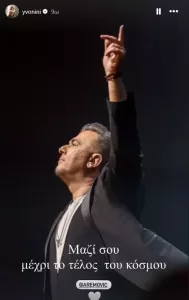 Η Υβόννη Μπόσνιακ ανέβασε μια φωτογραφία του τραγουδιστή και από κάτω έγραψε: «Μαζί σου μέχρι το τέλος του κόσμου» παραπέμποντας στη γνωστή επιτυχία του τραγουδιστή και με ένα emoticon καρδούλα.