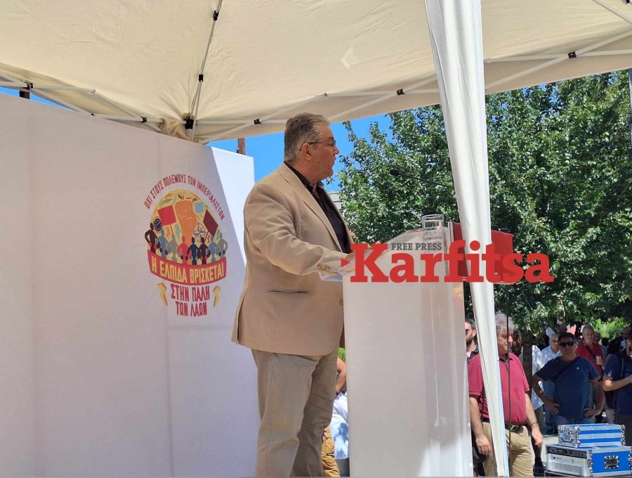 Μύδρους κατά της Νέας Δημοκρατίας, του ΣΥΡΙΖΑ και του ΠΑΣΟΚ εξαπέλυσε από τη Θεσσαλονίκη ο ΓΓ της ΚΕ του ΚΚΕ, Δημήτρης Κουτσούμπας, κατά την ομιλία του στο πλαίσιο της αντιπολεμικής συγκέντρωσης της ΚΝΕ έξω από το Γ’ Σώμα Στρατού το πρωί της Κυριακής.