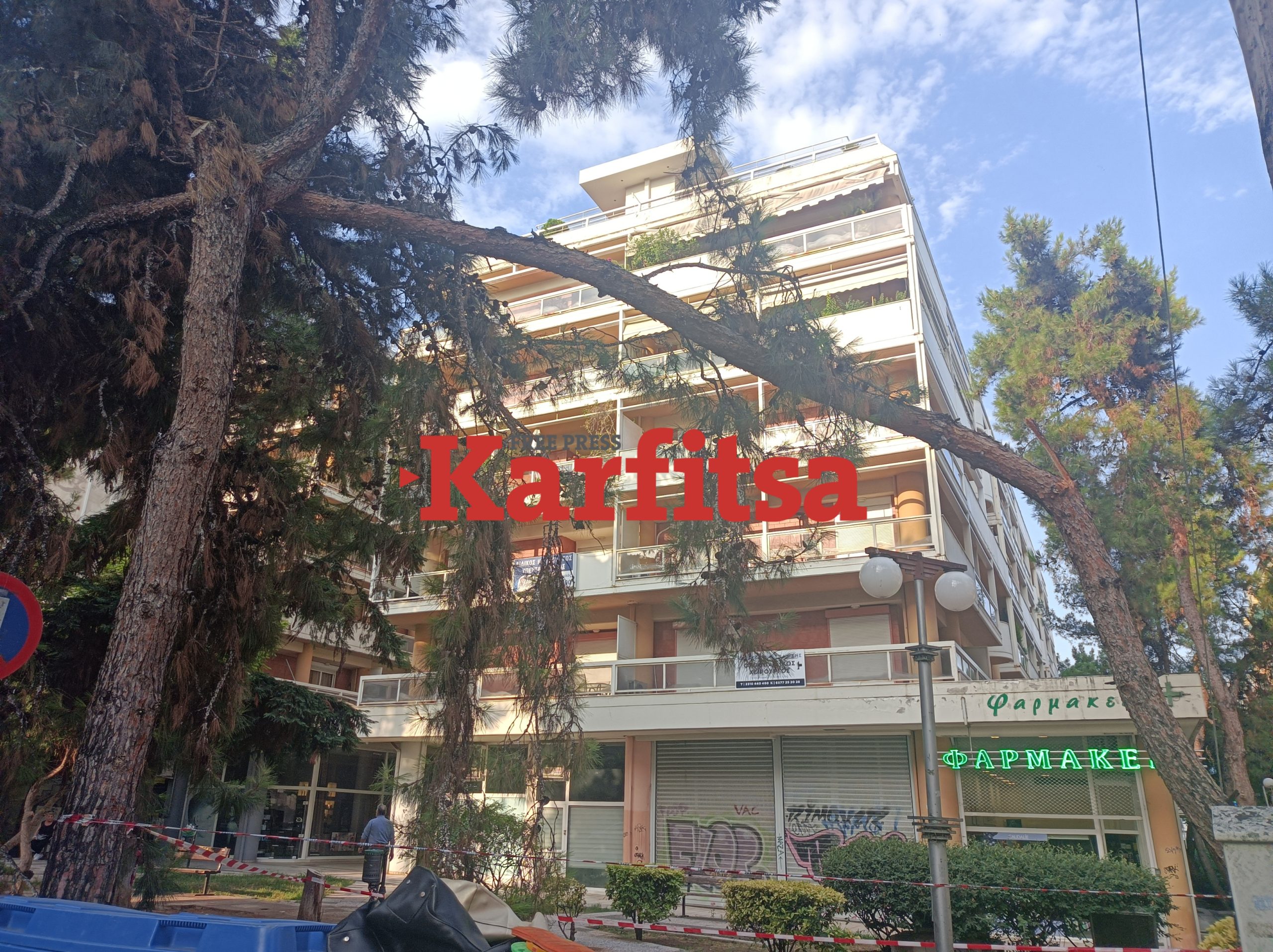 Ένα πεύκο έσπασε στα δύο στην περιοχή της Κηφισιάς χτες (10/07) βράδυ. Το δέντρο βρίσκεται στη μέση πάρκου και στο σημείο έχει τοποθετηθεί κορδέλα απαγόρευσης διέλευσης, καθώς υπάρχει κίνδυνος τραυματισμού αν το δέντρο καταρρεύσει εντελώς.